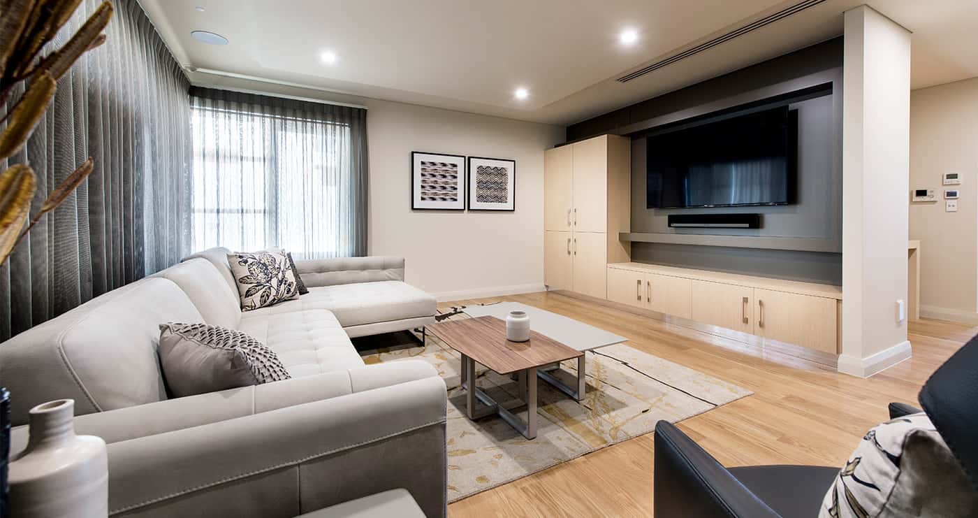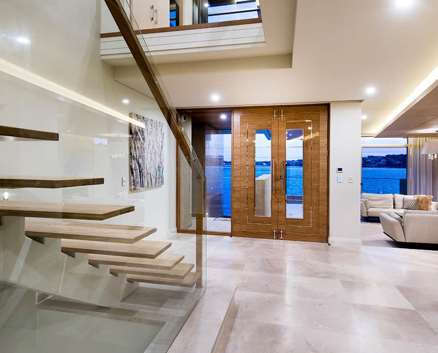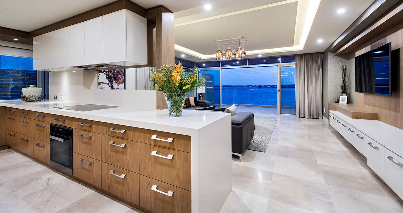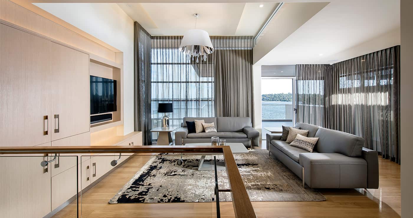 Our client had some very specific details he wanted the house to include as he was previously a builder himself. They wanted a clean, contemporary house with large, open windows to take full advantage of the beauty of the Swan River views. The first floor showcases the Swan River from two balconies and sweeping views from the living room. A huge master bedroom exudes luxury with sweeping views of the river, a large walk-in robe and electric underfloor bathroom heating.