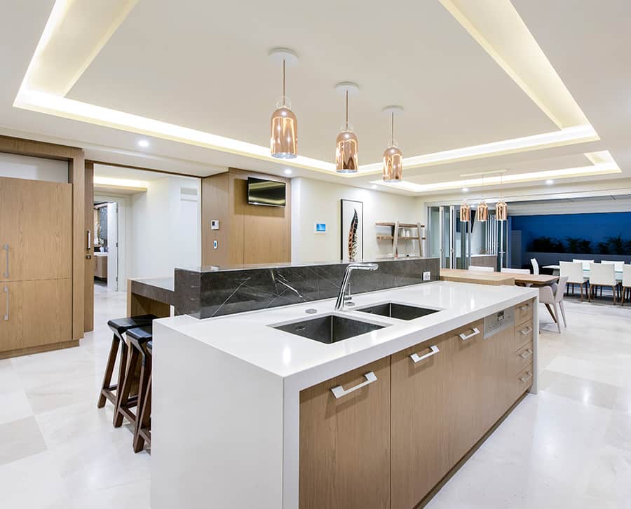 A 50kg food lift was included to make it easy to cater for large groups of people on any level of the house. The house is complete with a home-automation system that makes it easy to control the lighting, air-conditioning, blinds and security, all from one central location.